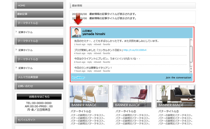 HOME» Twitterを設置する »TwitterをTOPページメインに設置する