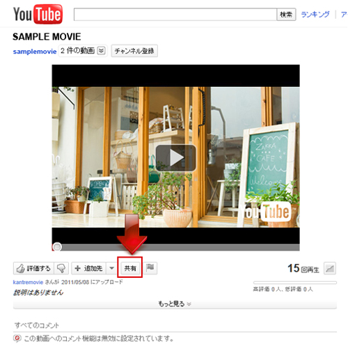 動画下部の「共有」をクリックします。