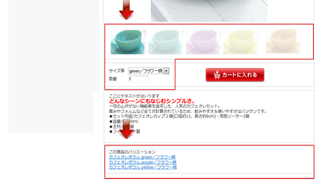 ※バリエーション登録した商品も、ショッピングカート30の登録制限数30個にカウントされます。(各商品の在庫数は関係ありません)。 |