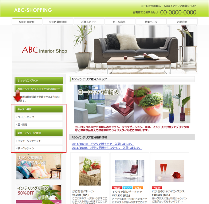 HOME» 【有料オプション】ショッピングカート »【商品管理】サブカテゴリを設定する