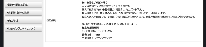 配送・時間指定については、契約の宅配業者の内容を記載してください。配達時間指定を表示する場合は、「配達時間帯設定」で設定してください。
