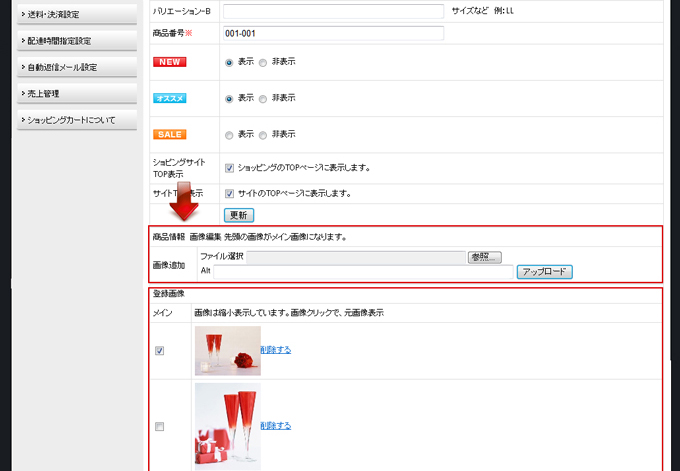 HOME» 【有料オプション】ショッピングカート »【商品管理】商品の画像を追加・編集する