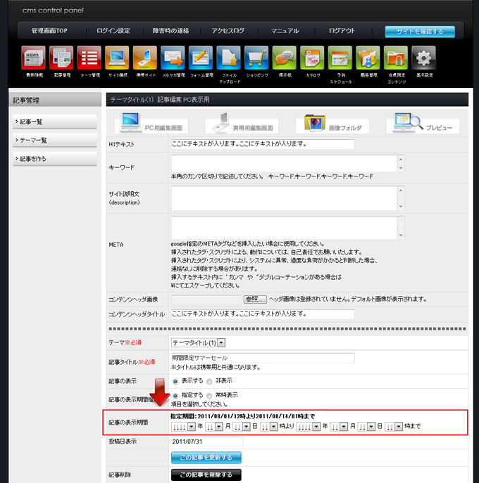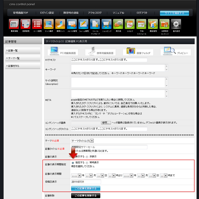 HOME» 記事を作る/編集する »記事の表示を期間指定にする