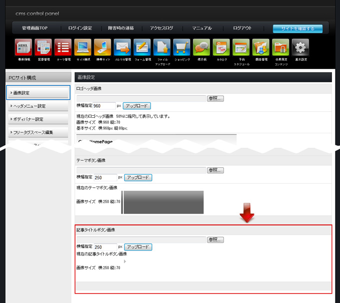 HOME» 画像の設定/変更 »記事タイトルボタン画像を変更する