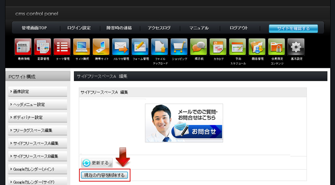HOME» フリータグスペース »サイドフリースペースを削除する
