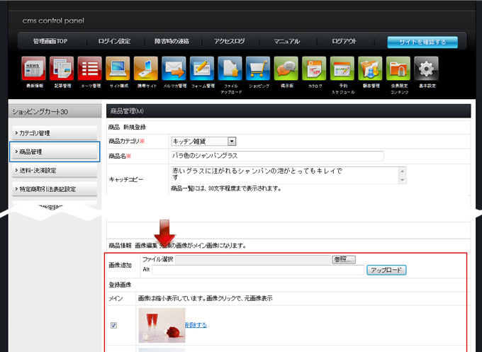 HOME» ショッピングカート30 »【商品管理】商品の画像を追加・編集する