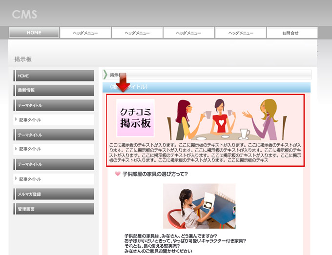 (5)掲示板のタイトル画像や説明などを、エディターで編集します