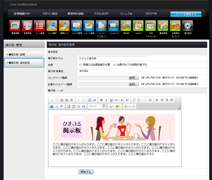 HOME» 【有料オプション】掲示板 »掲示板の基本設定