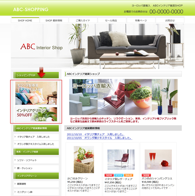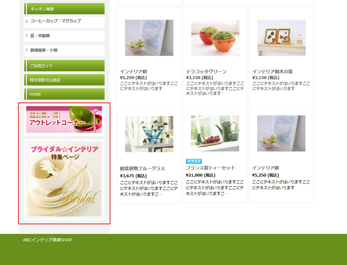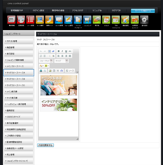 HOME» 【有料オプション】ショッピングカート »【表示設定】サイドフリースペースの編集
