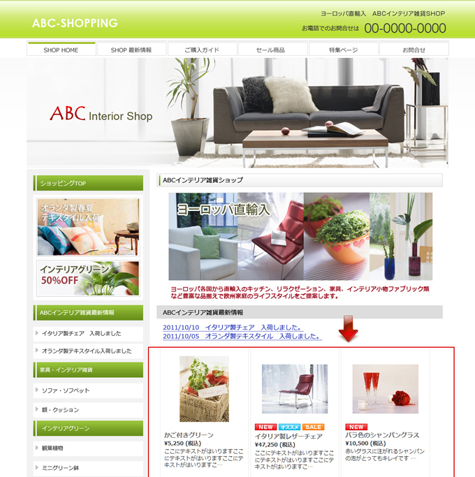 HOME» 【有料オプション】ショッピングカート »【表示設定】商品表示設定(ショッピングTOP)