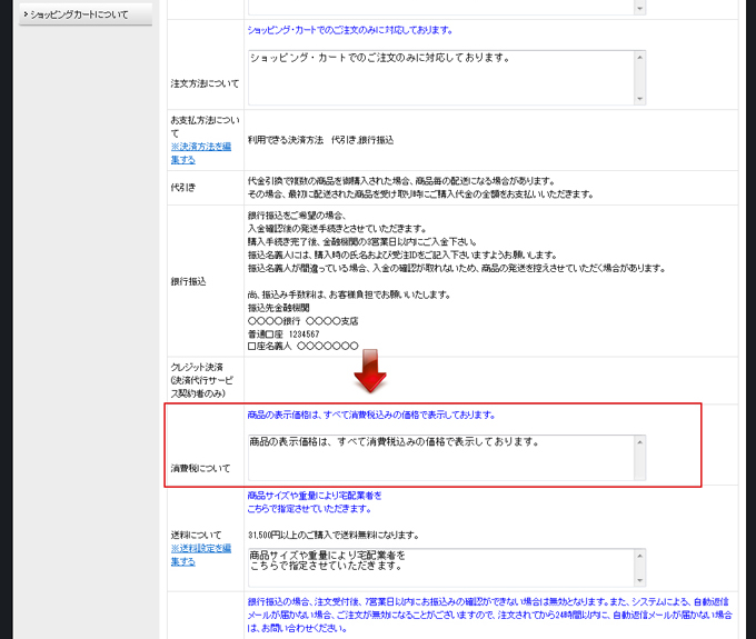 HOME» 【有料オプション】ショッピングカート »【基本設定】(4)表示価格・消費税の設定