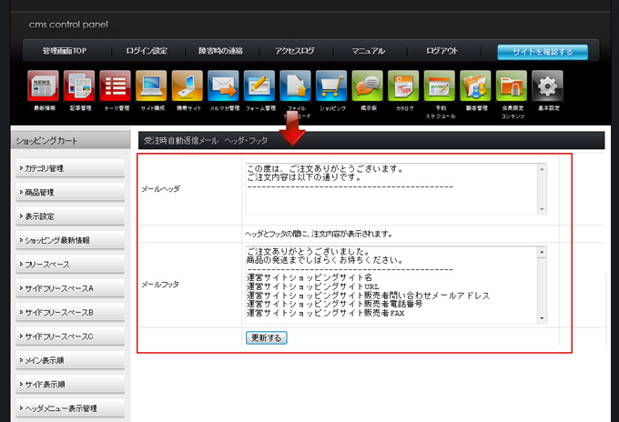 HOME» 【有料オプション】ショッピングカート »【基本設定】(6)受注時の自動返信メールを設定する