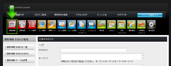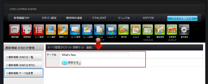 HOME» 最新情報を作る/編集する »最新情報のテーマ名を変更する