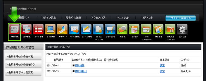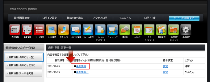 最新情報の記事を編集する