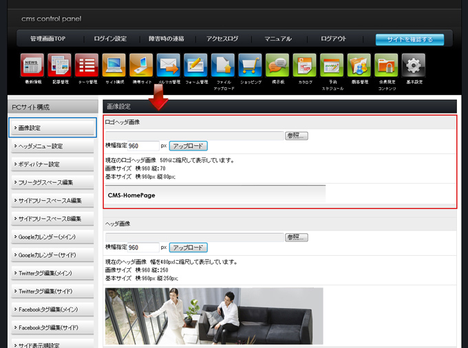 HOME» 画像の設定/変更 »ロゴヘッダ画像を変更する