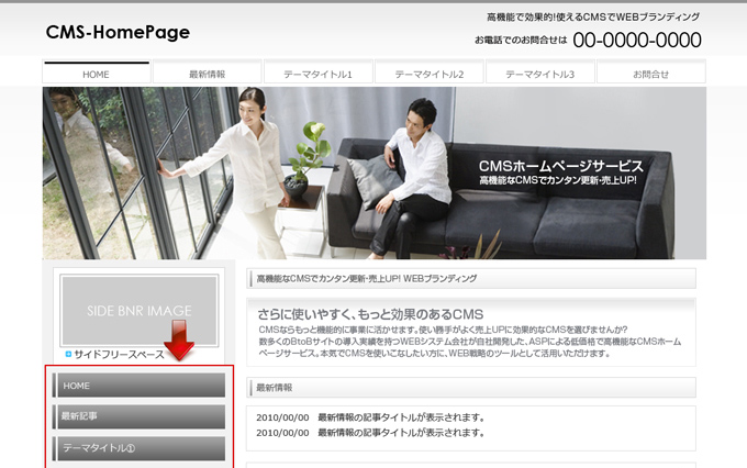 | 管理画面メニューから、「サイト構成」を開きます |